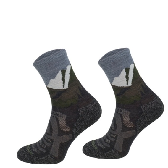 Skarpety wykonane w 70% z naturalnej wełny merynosowej, posiadają właściwości termoaktywne. Zapewniają równowagę termiczną, chroniąc stopy przed przegrzaniem, odprowadzając wilgoć na zewnątrz. Siatkowane panele z przodu zapobiegają poceniu się stopy i ograniczają rozwój bakterii odpowiedziałnych za powstawanie nieprzyjemnego zapachu.