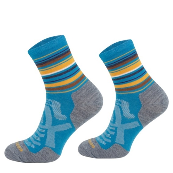 Skarpety wykonane w 70% z naturalnej wełny merynosowej, posiadają właściwości termoaktywne. Zapewniają równowagę termiczną, chroniąc stopy przed przegrzaniem, odprowadzając wilgoć na zewnątrz. Siatkowane panele z przodu zapobiegają poceniu się stopy i ograniczają rozwój bakterii odpowiedziałnych za powstawanie nieprzyjemnego zapachu.