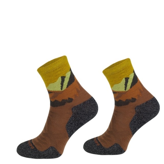 Skarpety wykonane w 70% z naturalnej wełny merynosowej, posiadają właściwości termoaktywne. Zapewniają równowagę termiczną, chroniąc stopy przed przegrzaniem, odprowadzając wilgoć na zewnątrz. Siatkowane panele z przodu zapobiegają poceniu się stopy i ograniczają rozwój bakterii odpowiedziałnych za powstawanie nieprzyjemnego zapachu.