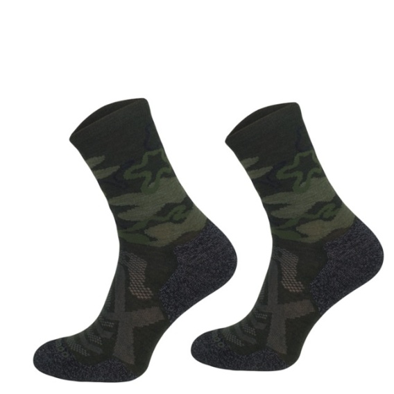 Skarpety wykonane w 70% z naturalnej wełny merynosowej, posiadają właściwości termoaktywne. Zapewniają równowagę termiczną, chroniąc stopy przed przegrzaniem, odprowadzając wilgoć na zewnątrz. Siatkowane panele z przodu zapobiegają poceniu się stopy i ograniczają rozwój bakterii odpowiedziałnych za powstawanie nieprzyjemnego zapachu.